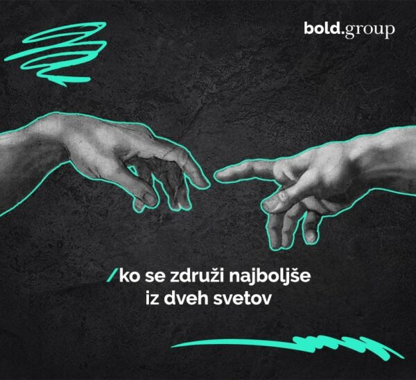 AM agencija in beglobal sta združili moči in odslej delujeta pod enotno znamko in imenom: BOLD.group. Simpatična, energična, zagnana ekipa mladih ustvarjalcev je že zadnji dve leti delovala sinhrono, čeprav sta bili v kali vsaka specialist na svojem področju. Ne eni strani je agencijo beglobal poganjala ekipa ustvarjalcev, ki so gradili zgodbe znamk na digitalnih strategijah, na drugi strani je agencijo AM Agencija peljala ekipa prav tako markantnih in simpatičnih ustvarjalcev, ki so se specializirali v organizaciji dogodkov, kreative in strateškega marketinga. A vedno so si bili tu in tam. Malo blizu malo daleč. Malo po spletu okoliščin (bližina poslovnih prostorov), malo po skupnih poznanstvih. Malo so tu in tam drug drugega pocukali za rokav, češ imamo naročnika, ki bi mu lahko skupaj bolj smiselno ponudili celovit servis. Tako se je skuhala zgodba: pa dajmo se malo tu in tam drzno združiti. Tako je z malo tu in malo tam drznimi premisleki in spontanostjo nastal čisto pravi in drzni Bold.