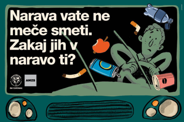 Vir: Trampolin. Ekologi brez meja so v sodelovanju z Eurowagom in s kreativnim Trampolin studio predstavili nacionalno kampanjo “Narava vate ne meče smeti. Zakaj jih v naravo ti?”, ki voznike in druge udeležence v prometu nagovarja k samorefleksiji in odgovornejšemu ravnanju z odpadki. Trampolin Studio je zasnoval celotno vizualno identiteto