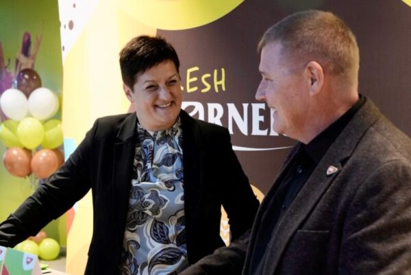 Na fotografiji: Valerija Glavač, direktorica MOL-a v Sloveniji, Neven Kolanović, vodja maloprodaje MOLa- v Sloveniji; vir: MOL Slovenija. MOL Slovenija obeležuje 10. obletnico Fresh Cornerja, gastronomskega koncepta, ki je iz lokalne pobude zrasel v eno največjih mrež kakovostne ponudbe za voznike v regiji. Fresh Corner danes deluje na več kot